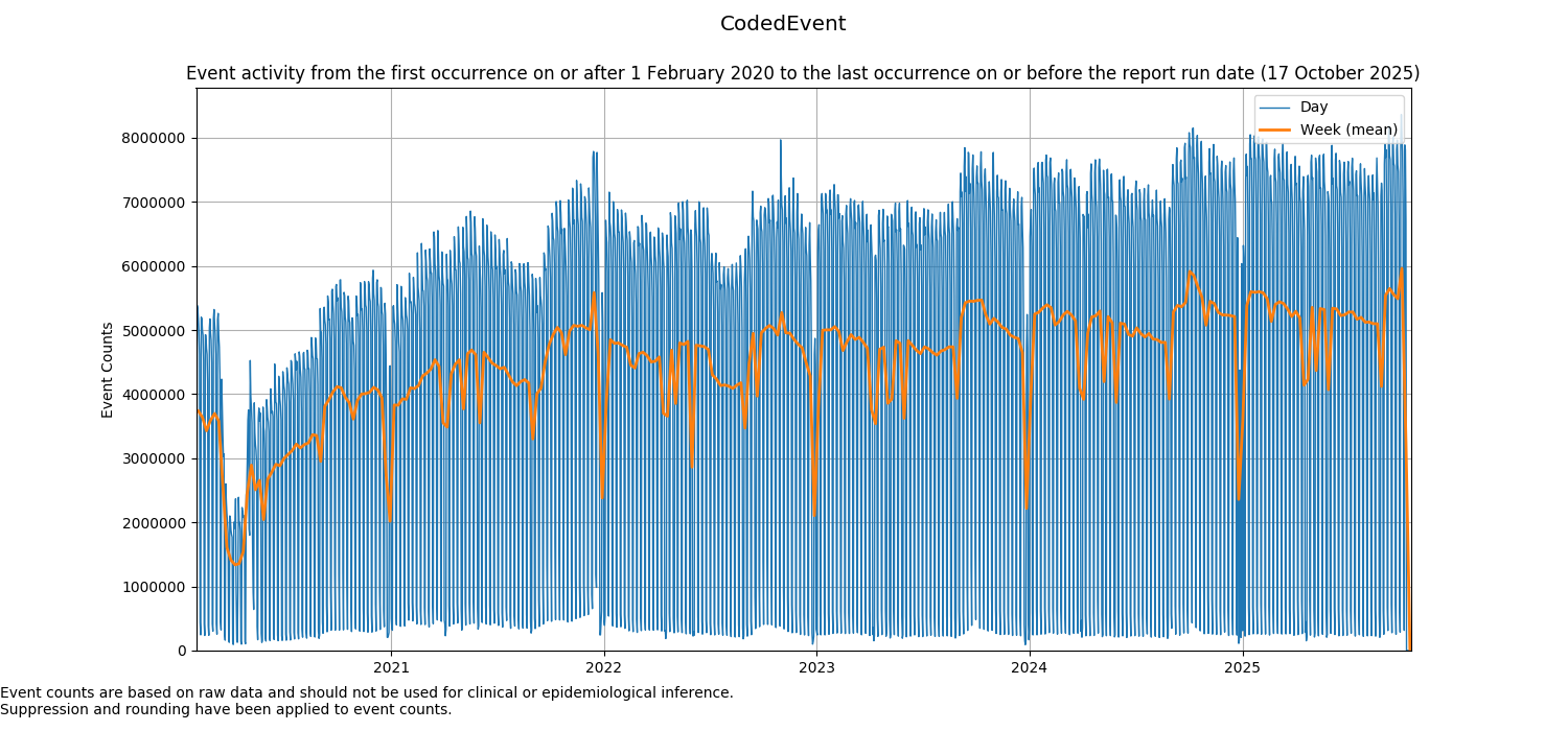 The OpenSAFELY-TPP database only includes patients who were registered at GP practices using TPP's SystmOne clinical information system (which is used by roughly 40% of GP practices) on or after 1 January 2009, including those patients who have since deregistered or died. The OpenSAFELY-TPP database therefore captures event activity for these patients only.